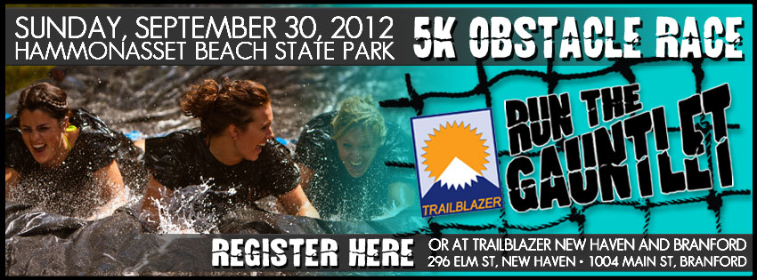 Trailblazer’s is hosting its first annual “Run the Gauntlet ” 5K race complete with obstacles, sand, live music and fun! The event takes place on Sunday, September 30, 2012 at Hammonasset Beach State Park in Madison, CT.